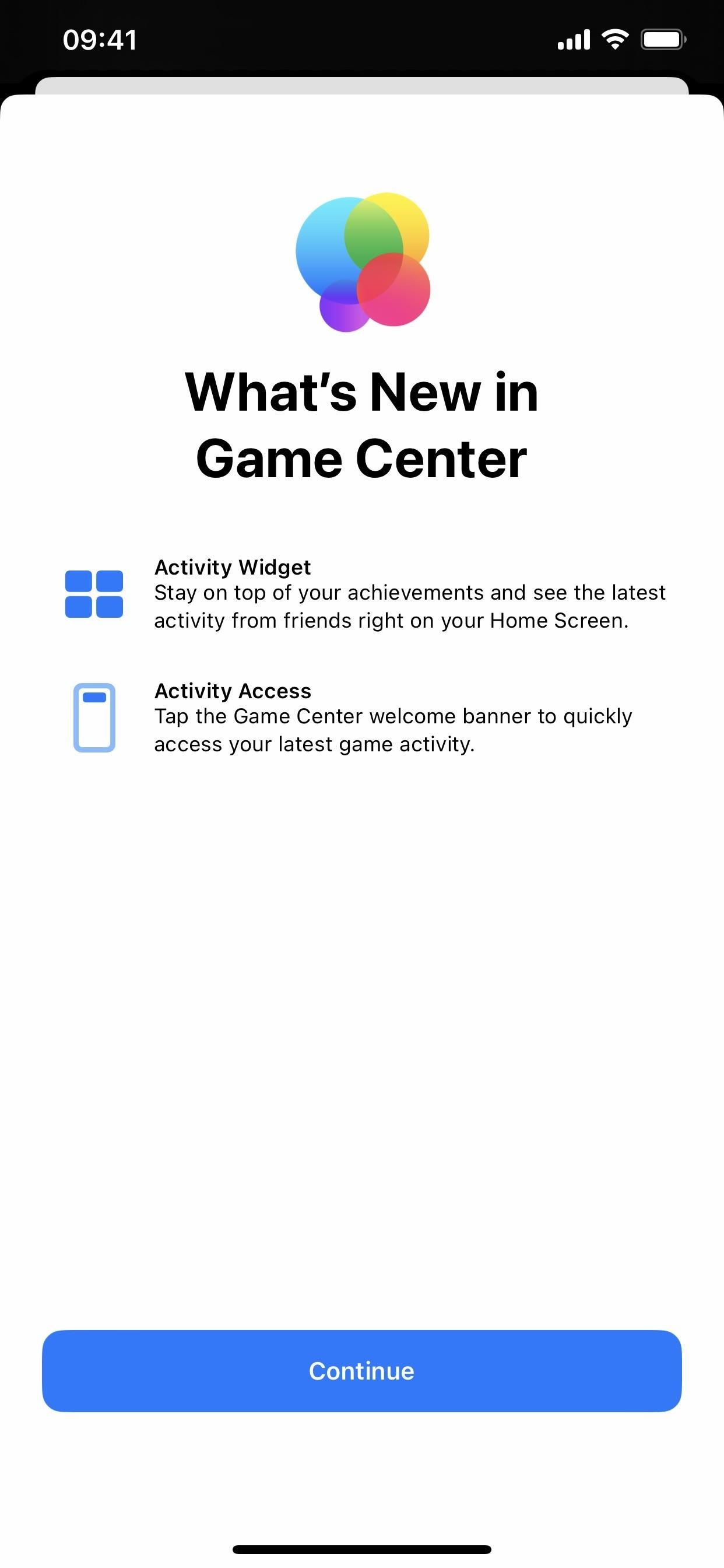 當 iOS 16.1 發佈時,Game Center 展示了一個新的啟動畫面,描述了重新設計的儀表板和玩家配置文件以及新的聯繫人集成。在 iOS 16.4 上,有一個更新的突出顯示“活動小部件”的功能,該小部件已經可用: