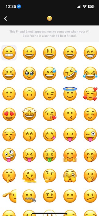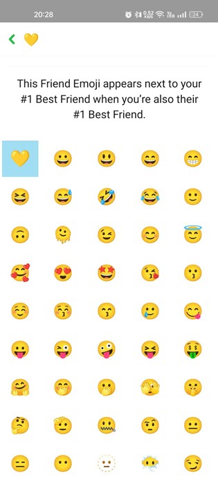 5.在下一個屏幕上,選擇要在所選朋友類別中設置的新表情符號。