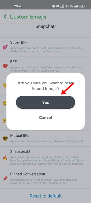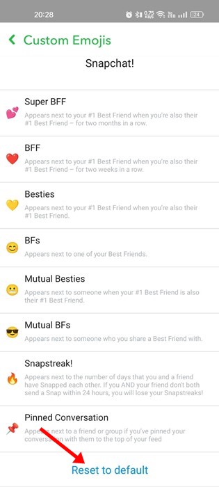 就是這樣。這將在 iPhone 或 Android 上重置您的自定義 Snapchat 表情符號。