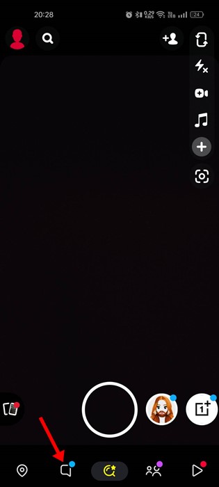 1.首先,在您的 Android 設備上打開 Snapchat 應用,然後點擊底部的聊天 圖標。