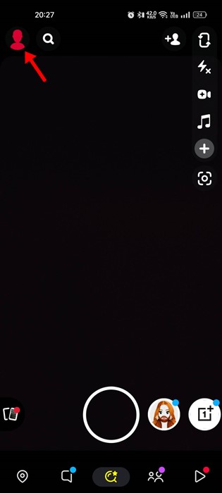 1.首先,打開 Snapchat 應用程序。當 Snapchat 應用程序打開時,點擊屏幕左上角的 Bitmoji 圖標。