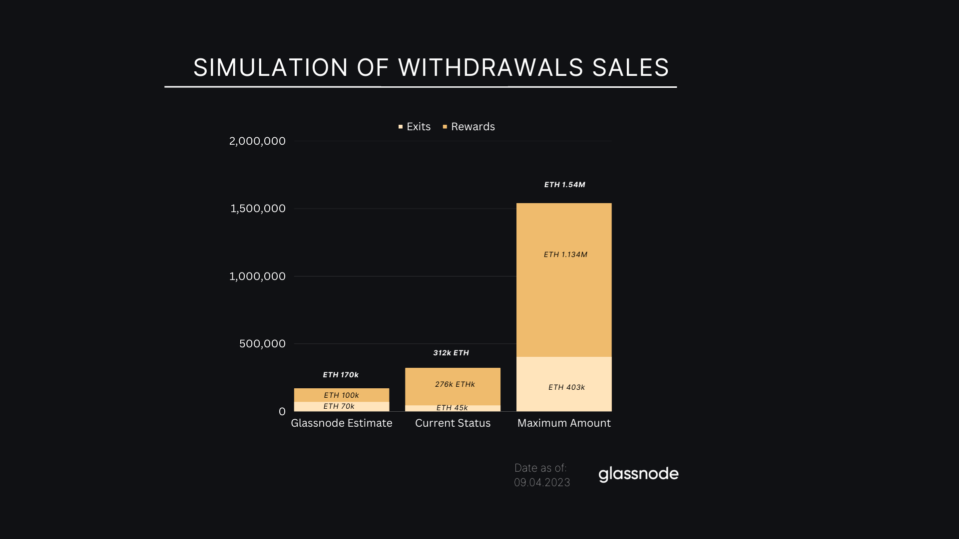 Glassnode 認為中間情景上圖可能最接近以太坊上海昇級上線時的實際情況。