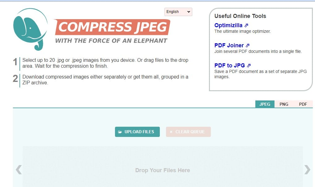 Compress JPEG 可能是圖像壓縮方面的最佳網站。你不會相信,但該站點允許用戶選擇多達 20 種.jpg 或.jpeg 文件類型。