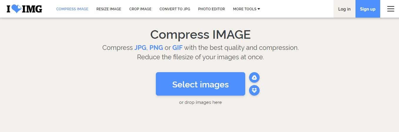 如果您正在尋找基於網絡的圖像壓縮器來壓縮 JPG、PNG 和 GIF 圖像, Iloveimg 可能是最佳選擇。該站點在不影響原始圖像質量的情況下減小了圖像的文件大小。