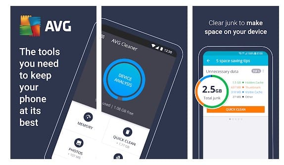 AVG Cleaner 還可以掃描圖片和視頻以查找重複項。 AVG Cleaner 的應用程序分析器功能允許您識別耗盡移動數據或占用過多存儲空間的應用程序。