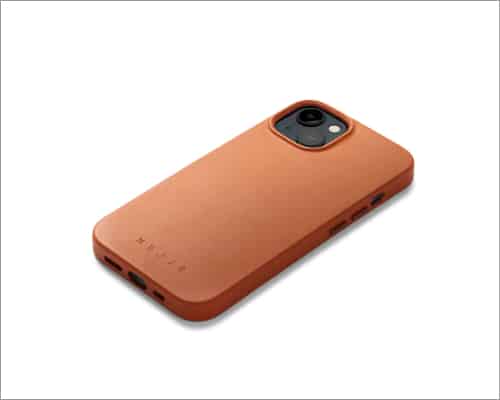 您將獲得美妙的按扣體驗,因為它具有適合 6.1 英寸 iPhone 14 型號的內置磁鐵。除此之外,它還提供方便快捷的無線充電。使用 MagSafe 充電器或 Qi 認證充電器充電時,您無需取下皮套。因此,這款手機殼可以保護您的 iPhone 免受跌落和刮擦,並具有美麗的古銅色外觀。