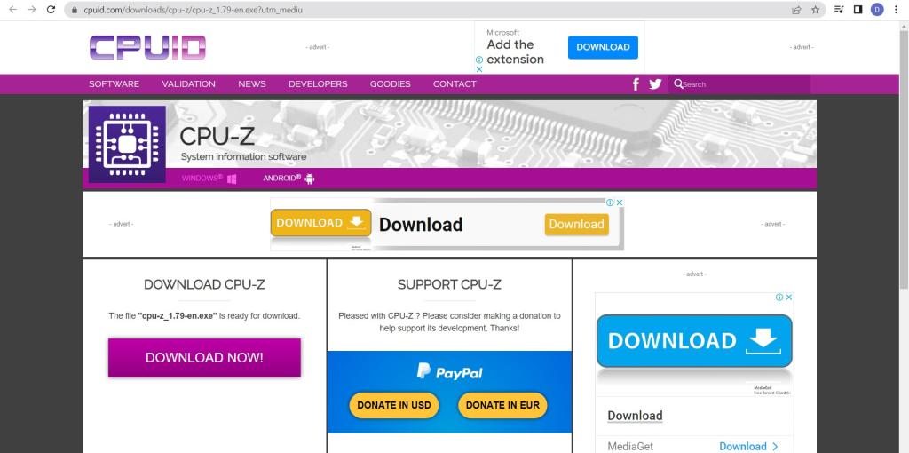 1.首先,如果您以前沒有,請下載 CPU-Z (免費) 來自此處附加的鏈接。