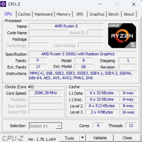 2。下載並安裝後,只需雙擊 CPU-Z 桌面圖標即可加載程序。您將被發送到一個如下所示的窗口,該窗口將為您提供有關您的 CPU 的一些相關信息。