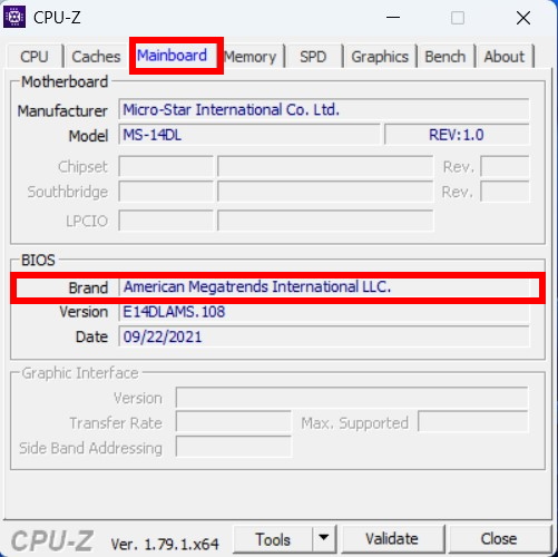 3.接下來,使用頂部的導航欄移至“主板”標籤。在這裡,在 BIOS 部分下,您會在“Brand”標題旁邊找到您的 BIOS 製造商的名稱。在我們的例子中,BIOS 製造商是 American Megatrends International (AMI)。