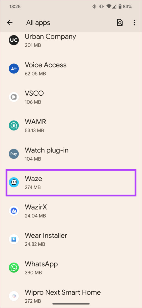 第 3 步: 向下滾動並選擇 Waze。這將調出應用首選項。