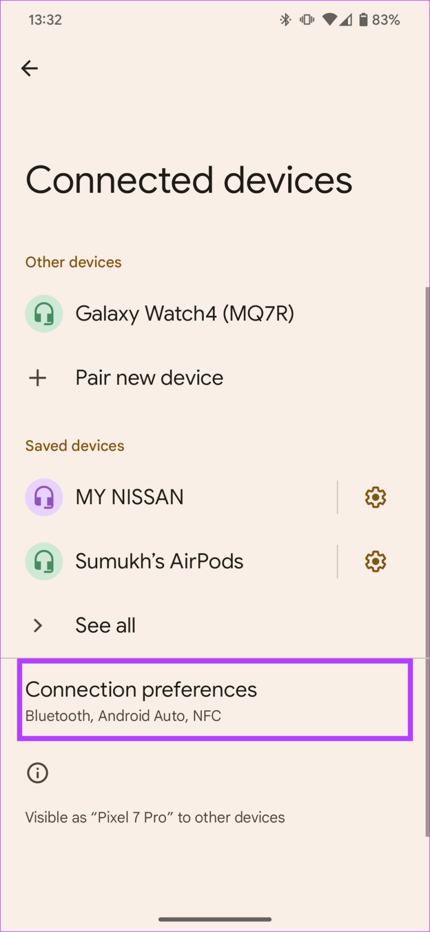 第 1 步:打開智能手機上的“設置”應用。導航到已連接的設備部分。