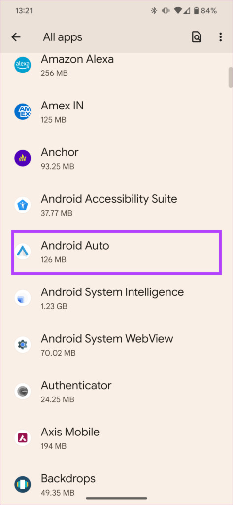 第 3 步:向下滾動並選擇 Android Auto。這將調出應用首選項。