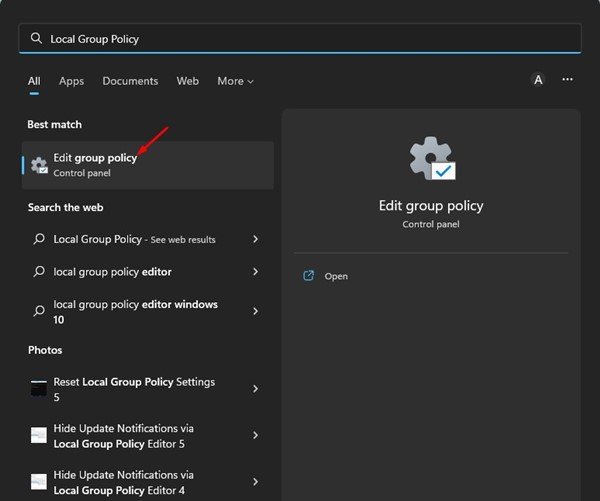 1.首先,點擊 Windows 11 搜索並輸入本地組策略編輯器。