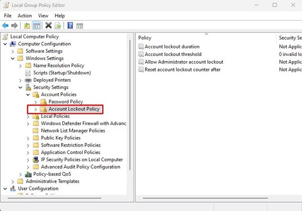 1) 通過組策略編輯器更改帳戶鎖定閾值