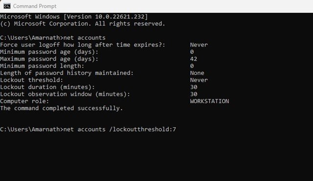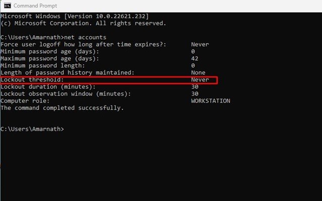 就是這樣!您可以通過命令提示符更改 Windows 11 中的帳戶鎖定閾值。