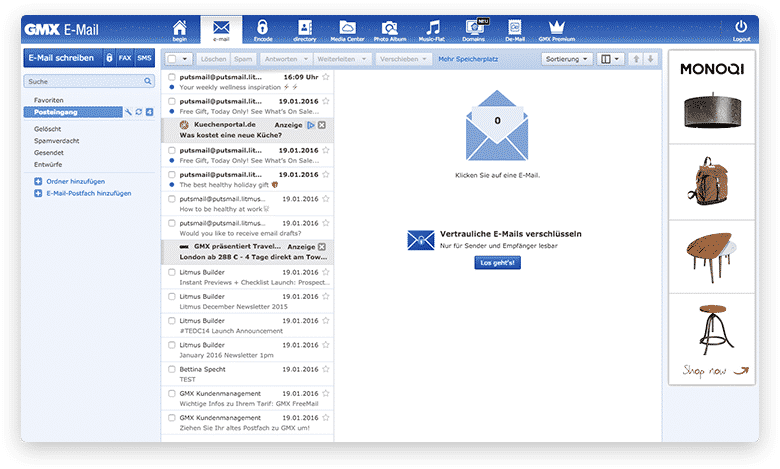 除此之外,GMX 還提供了一些其他功能,例如在線辦公室和組織者。您可以直接從帶有在線辦公集成的電子郵件界面管理文檔、PDF 等。