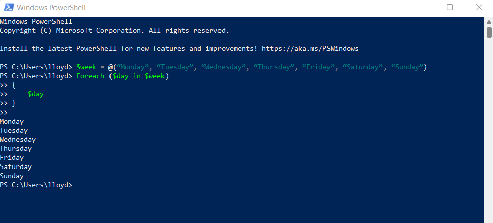 Eine andere Form der For-Schleife ist die ForEach-Anweisung. Diese Version vereinfacht das Durchsuchen der Inhalte eines PowerShell-Arrays und deren individuelle Verarbeitung. Das vorherige Code-Snippet kann beispielsweise wie folgt umgeschrieben werden: