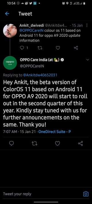 Auf die Frage einer Reihe von Benutzern, wann genau ihre Oppo A9-Geräte die versprochenen Beta-Builds von ColorOS 11 erhalten, Oppo benachrichtigt sie , dass die Builds im zweiten Quartal 2021 verfügbar sein werden.
