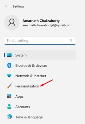 2. Wechseln Sie in der App”Einstellungen”auf der linken Seite zur Registerkarte Personalisierung.