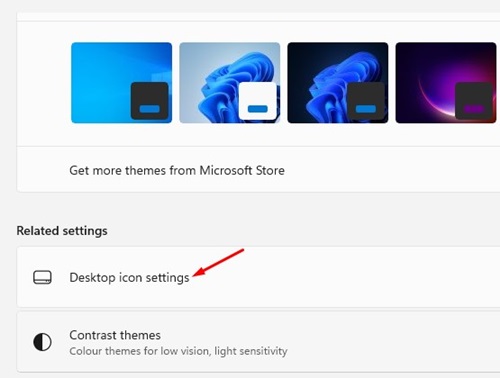 4. Scrollen Sie auf der Seite „Designs“ nach unten zu „Verwandte Einstellungen“ und klicken Sie auf die Desktop-Symboleinstellungen.