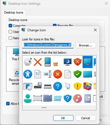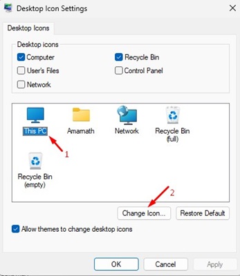 5. Wählen Sie nun das Desktop-Symbol aus, dessen Symbol Sie ändern möchten, und klicken Sie auf die Schaltfläche Symbol ändern.