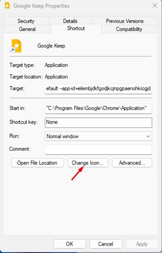 2. Wechseln Sie in den Verknüpfungseigenschaften zur Registerkarte Verknüpfung und klicken Sie auf die Schaltfläche Symbol ändern.
