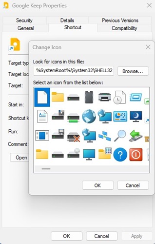 3. Wählen Sie nun das Symbol aus, das Sie verwenden möchten. Sie können Symbole auch manuell auswählen, indem Sie auf die Schaltfläche Durchsuchen klicken.