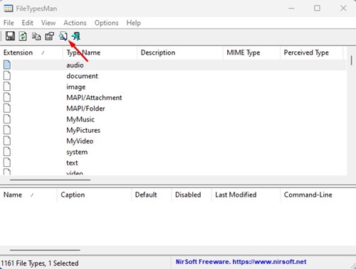 3. Klicken Sie im FileTypesMan-Fenster auf das Symbol Suchen, wie im Screenshot unten gezeigt.