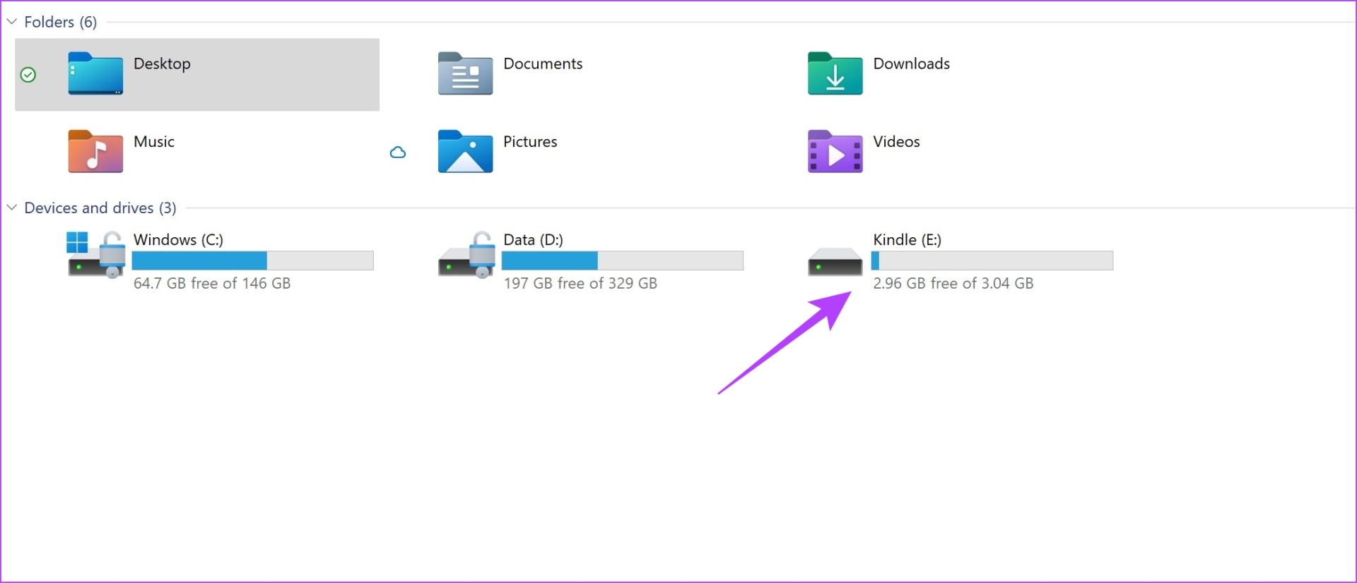 Schritt 2: Der Kindle Reader wird nun unter „Geräte und Laufwerke“ angezeigt.