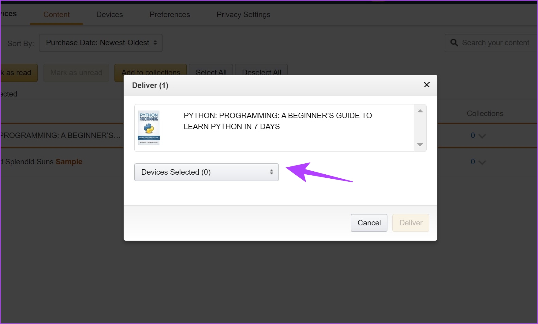 Schritt 6: Wählen Sie nun Ihren Kindle aus und klicken Sie auf Liefern.