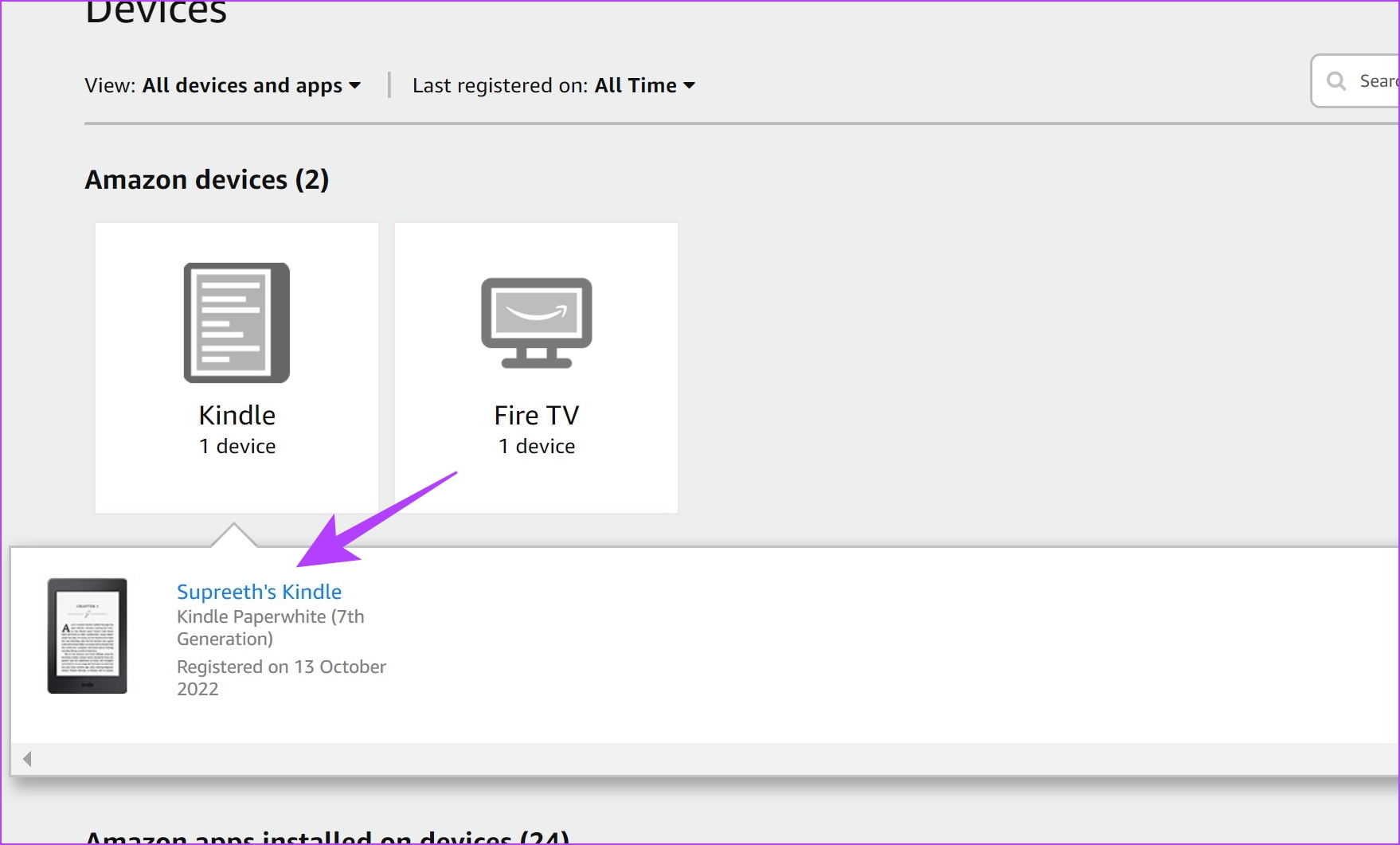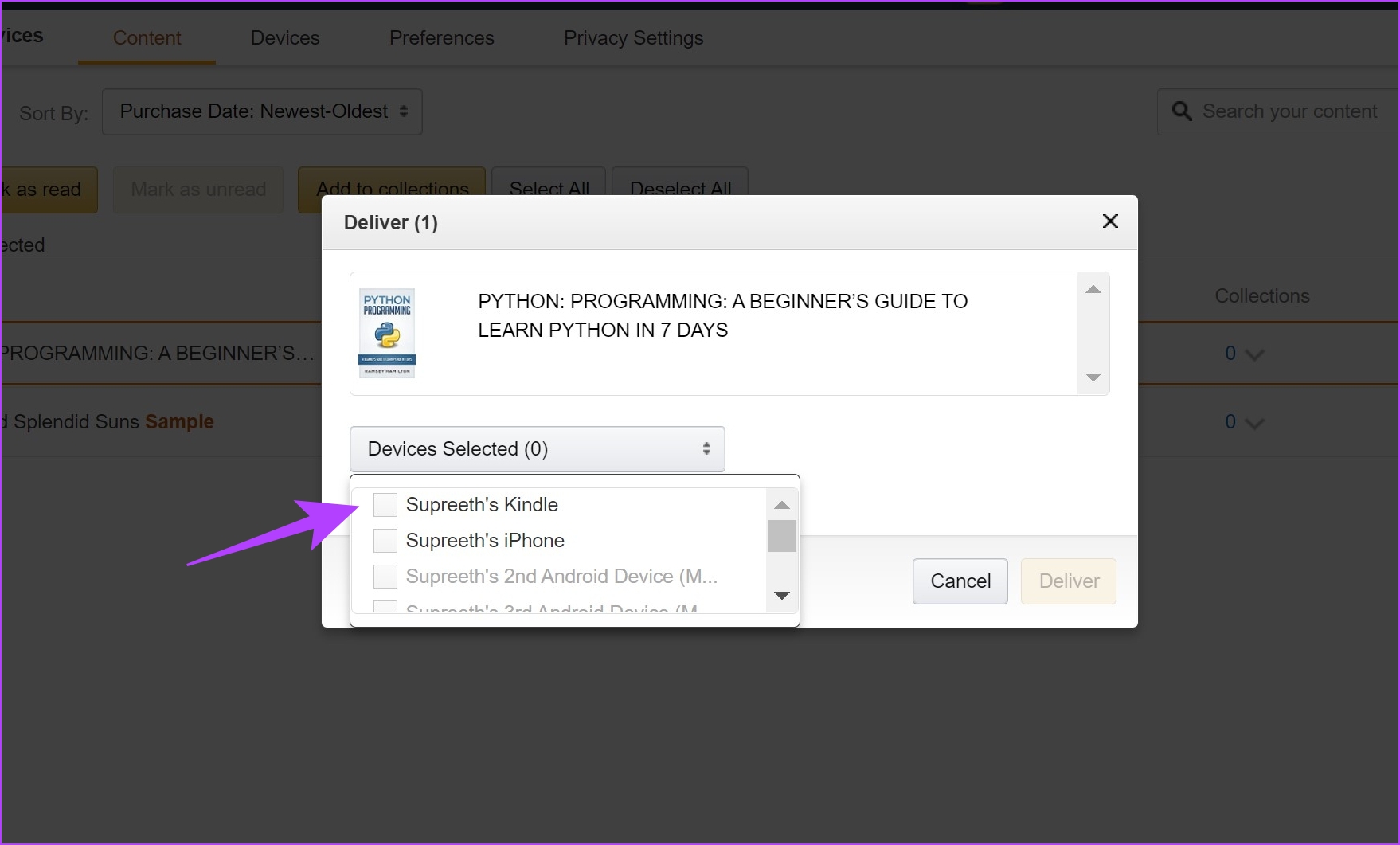 Schritt 5: Wählen Sie Ihren registrierten Kindle aus.