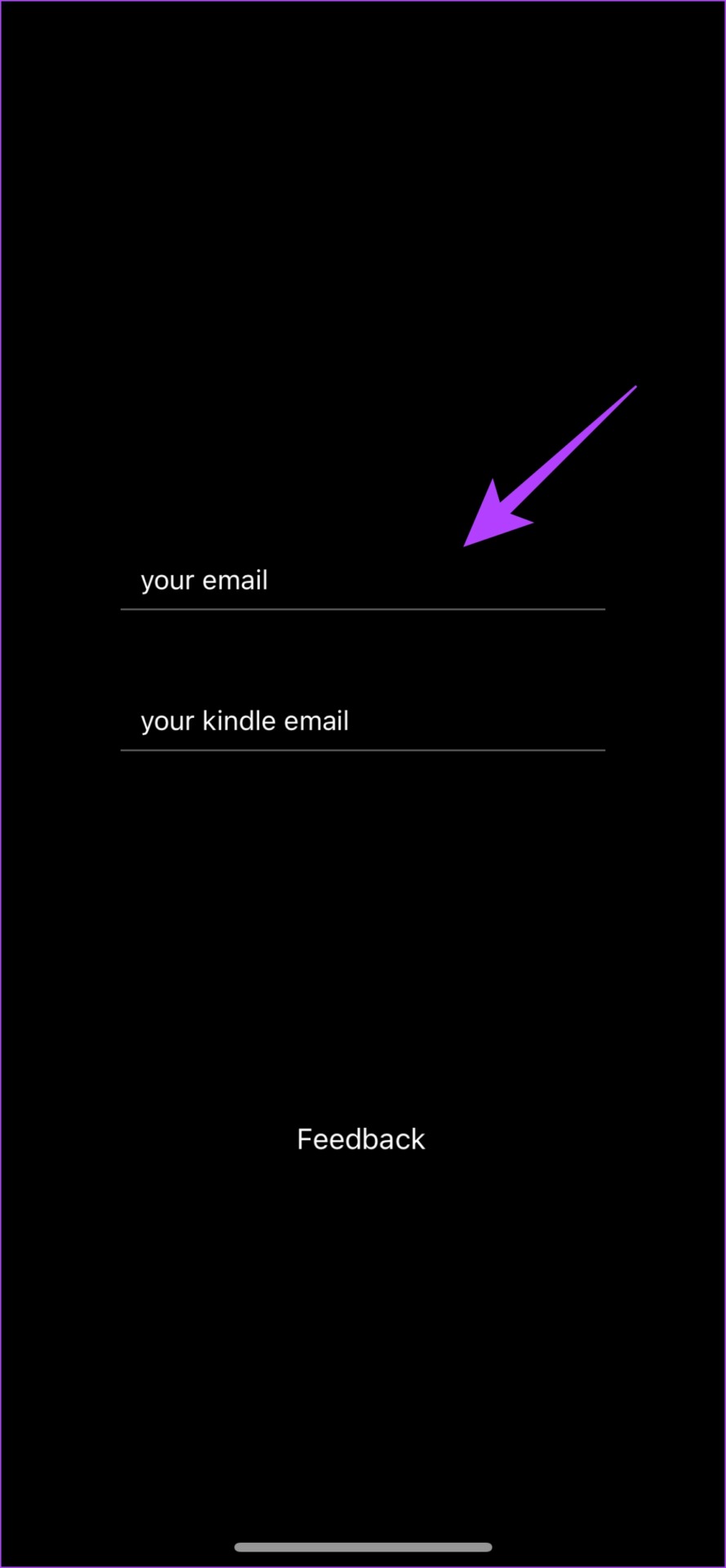 Einmal Wenn Sie die App herunterladen, geben Sie Ihre Kindle-E-Mail-Adresse ein.