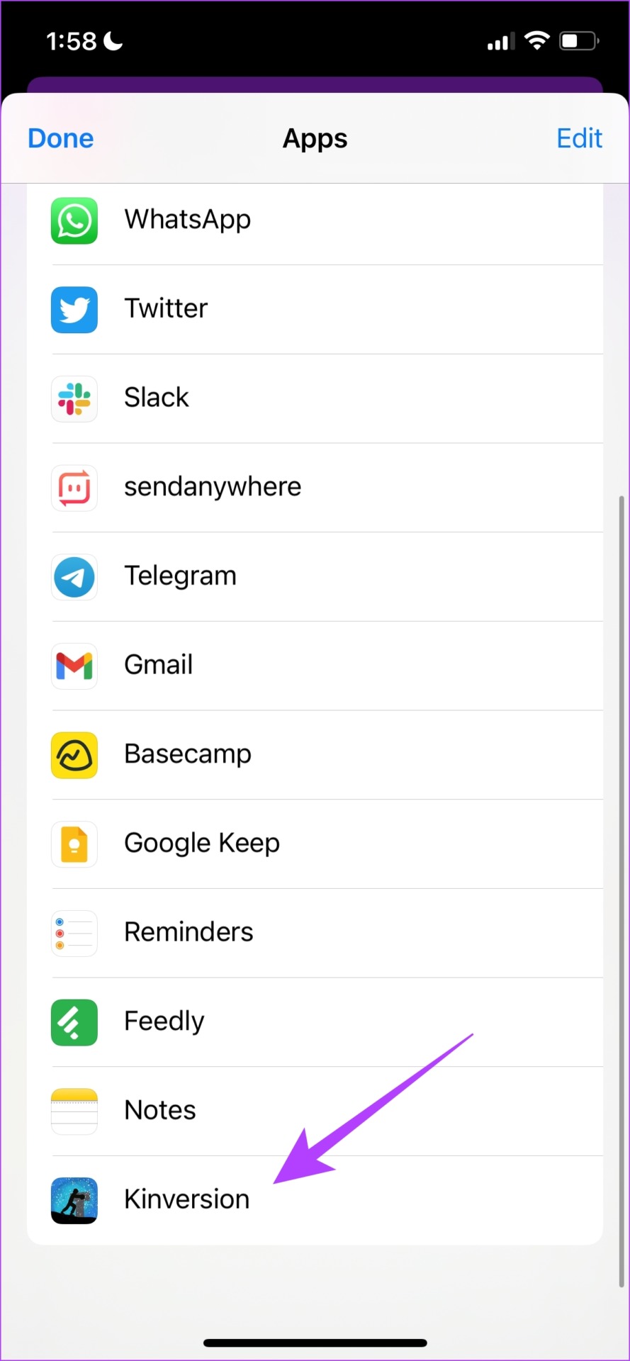 Schritt 3: Wählen Sie mehr in den Freigabeoptionen und wählen Sie Kinversion.