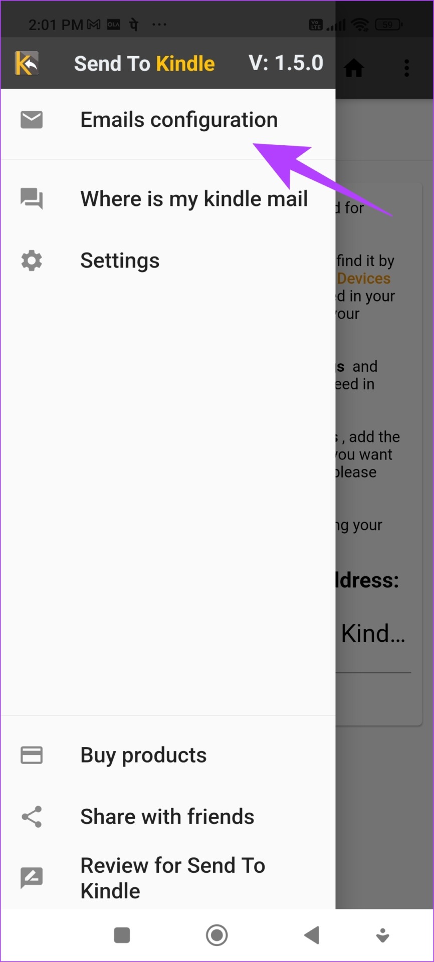 Tippen Sie auf das untere Pfeilsymbol und wählen Sie Alle Einstellungen. Wählen Sie jetzt Ihr Konto aus und Sie können Ihre Kindle-E-Mail unter „Send-to-Kindle Email“ sehen.