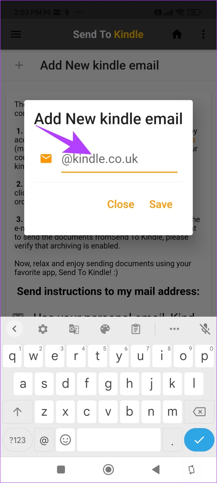 Schritt 3: Geben Sie Ihre Kindle-E-Mail-Adresse ein und speichern Sie sie.