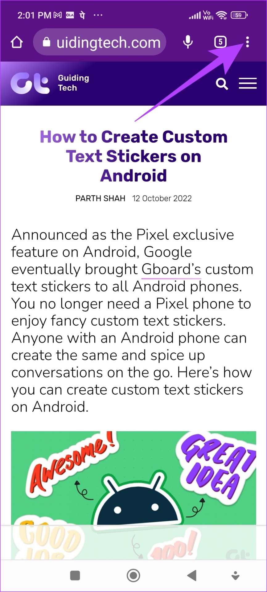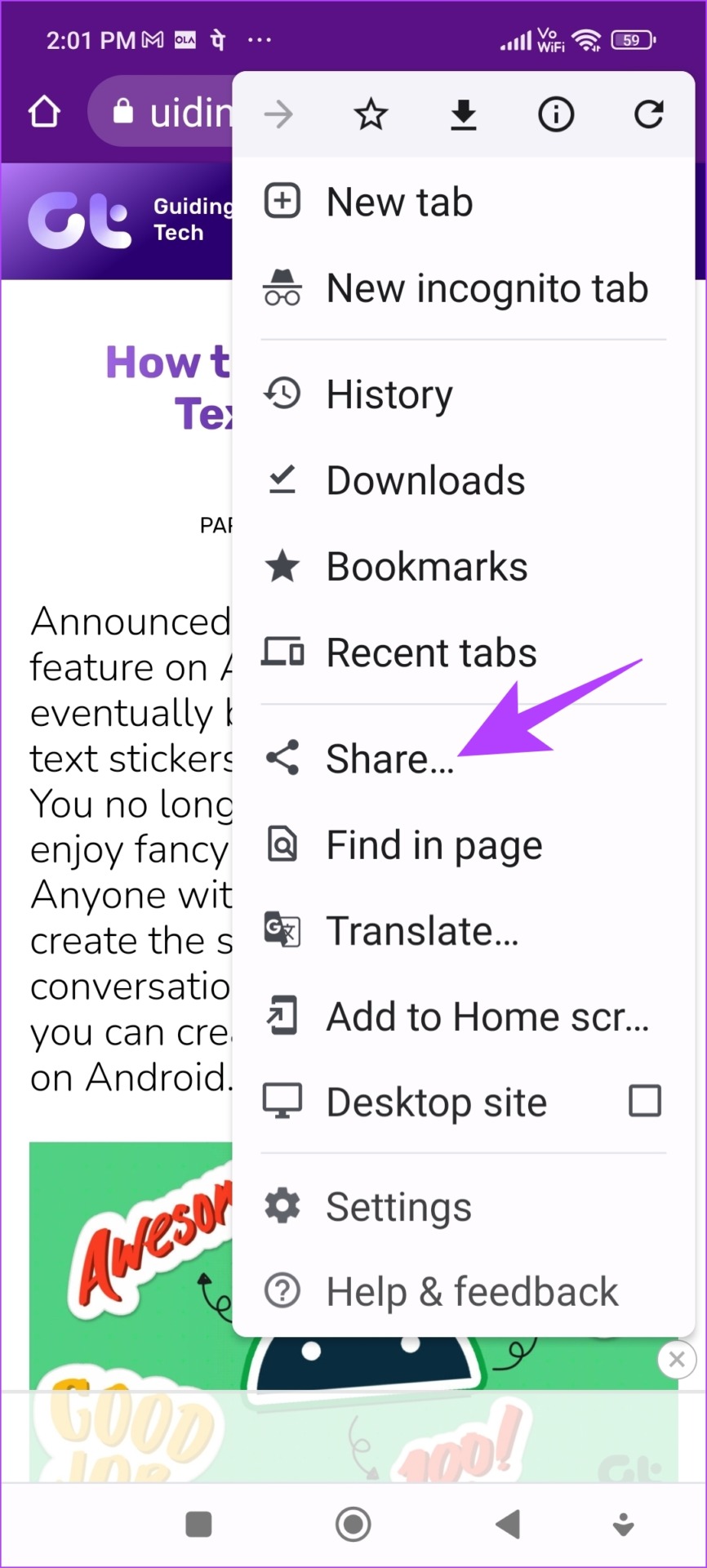Schritt 4: Öffnen Sie nun die Webseite die Sie teilen möchten. Klicken Sie oben rechts auf das Symbol mit den drei Punkten und dann auf Teilen.