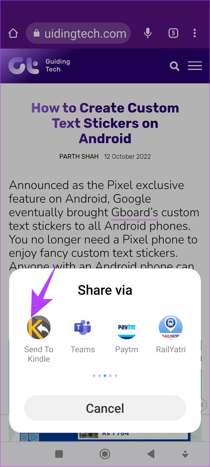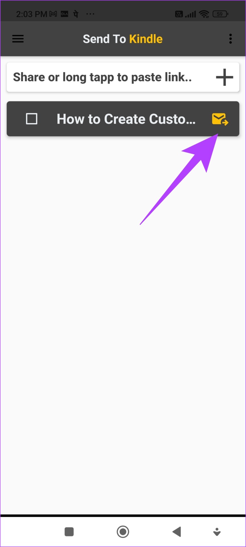 Schritt 5: Wählen Sie zuletzt „An Kindle senden“ und die Webseite wird in der Liste der Links in der App angezeigt.