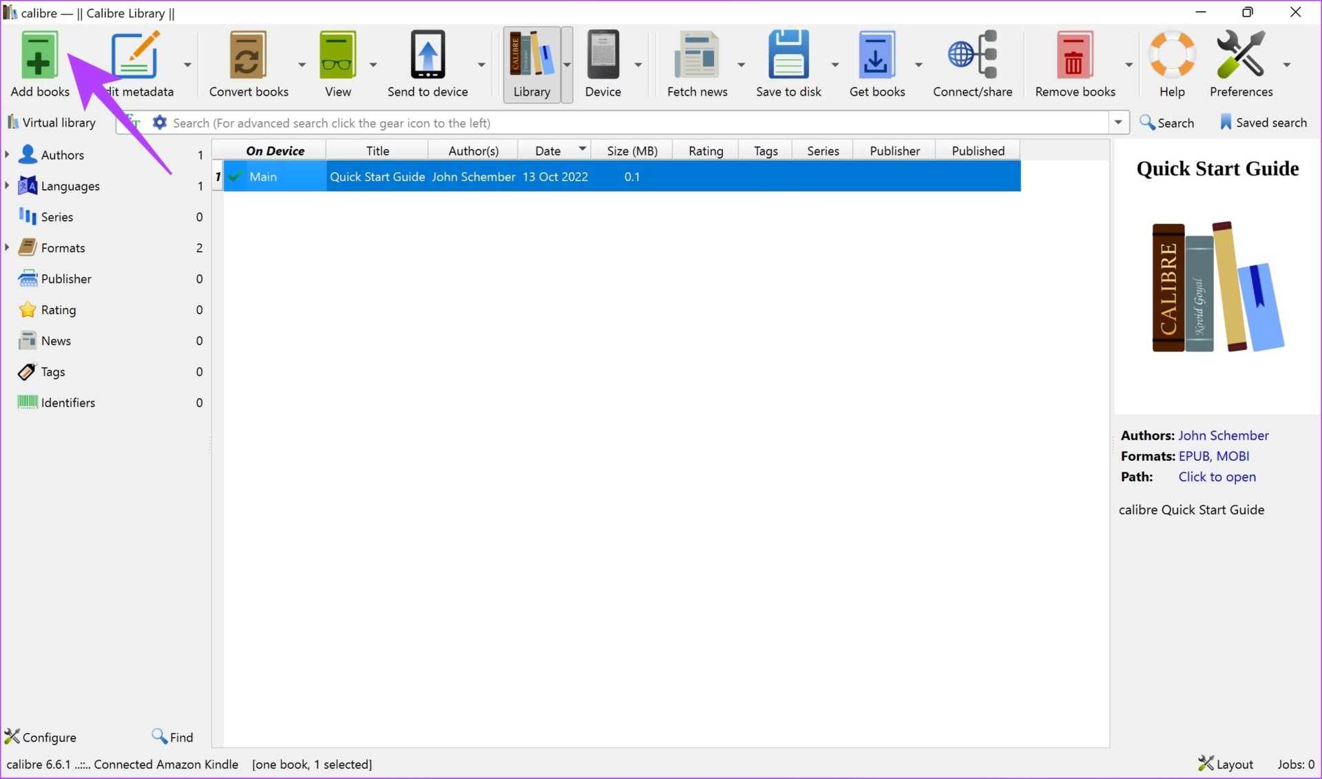 Calibre ist ein guter Verwaltungsdienst für E-Books, sowohl für Windows als auch für Mac. Sie können alle Kindle-Dateiformate hinzufügen, verfolgen, bearbeiten und konvertieren. So können Sie mit Calibre Dokumente an Kindle senden.