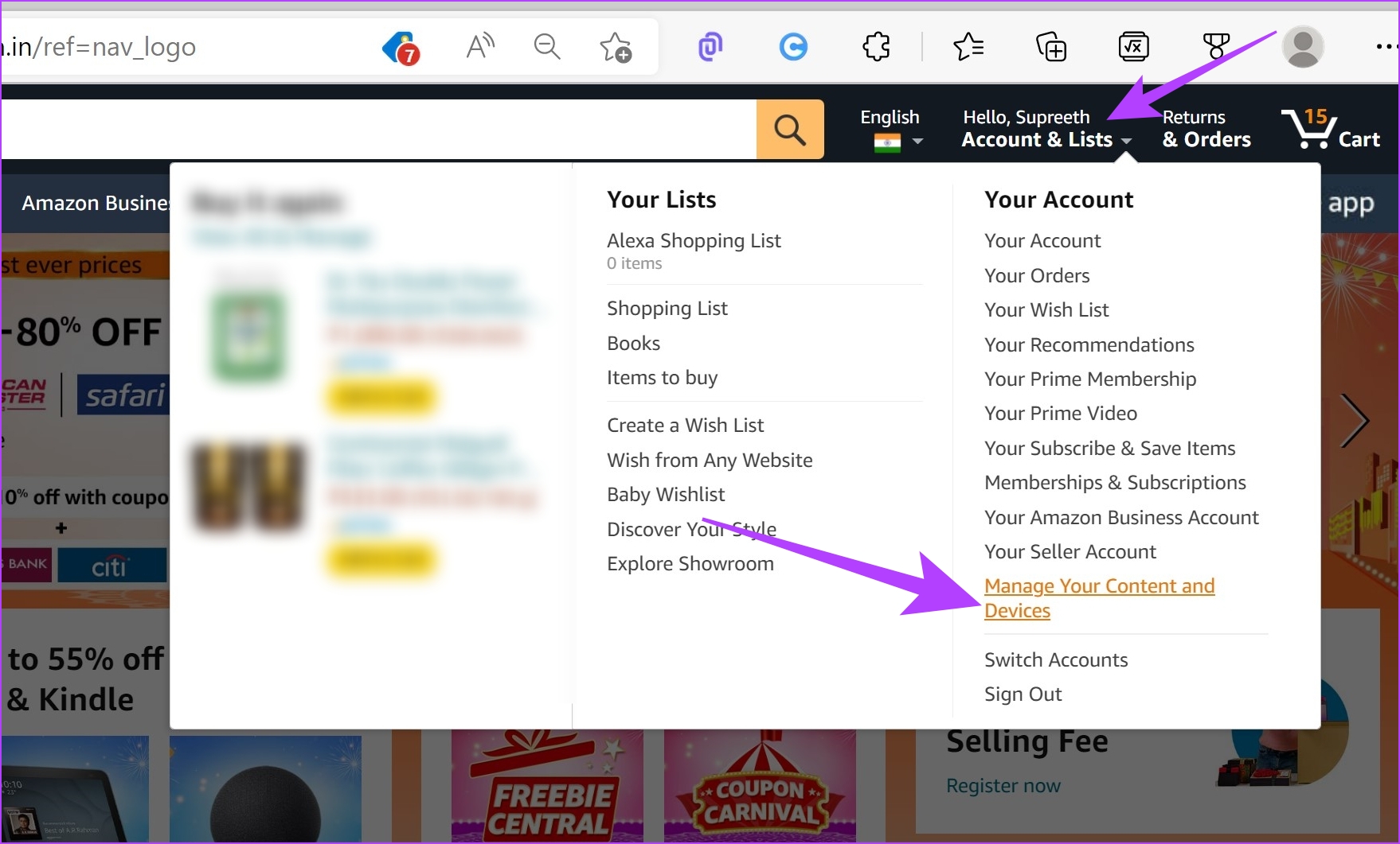 Schritt 3: Wählen Sie „Meine Inhalte und Geräte verwalten“..