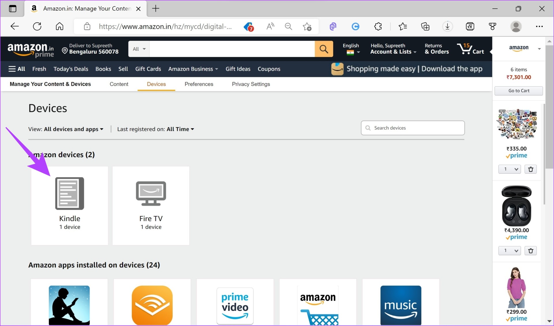 Schritt 4: Wählen Sie auf der Registerkarte Geräte die Option Kindle aus.