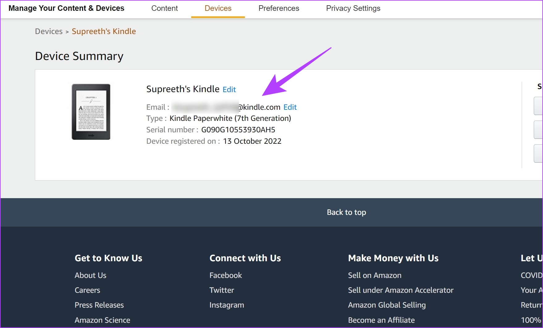 Schritt 6: Jetzt können Sie die E-Mail-Adresse Ihres Kindle-Lesegeräts sehen. Kopieren Sie die Adresse.