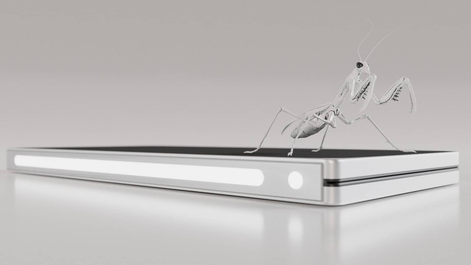 Dieses faltbare Gerät hat rundum flache Seiten und das Scharnier selbst ist ebenfalls kantig und ungewöhnlich. Das Gerät scheint im gefalteten Zustand unglaublich dünn zu sein, aber das ist nicht verwunderlich, wenn man bedenkt, dass es sich um ein Konzepttelefon handelt.