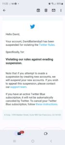 Benutzer, deren Konten von der Plattform gesperrt wurden, erhalten eine Benachrichtigung, dass ihre Konten wegen „Verstoßes gegen unsere Regeln zur Umgehung der Sperrung“ gesperrt wurden.