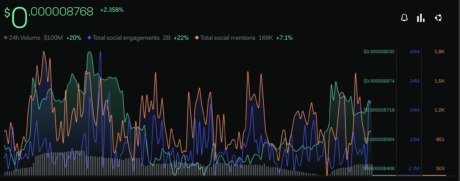Insbesondere SHIBs Die Erwähnungen in den sozialen Medien erreichten in der vergangenen Woche 10.240, während die sozialen Engagements in der vergangenen Woche 344,8 Millionen erreichten. Bei der Analyse der wöchentlichen Leistung verzeichnete SHIB einen deutlichen Anstieg des sozialen Engagements um 20,7 % auf 2 Milliarden, während die Gesamtzahl der Erwähnungen um 6,5 % auf 168.000 stieg.