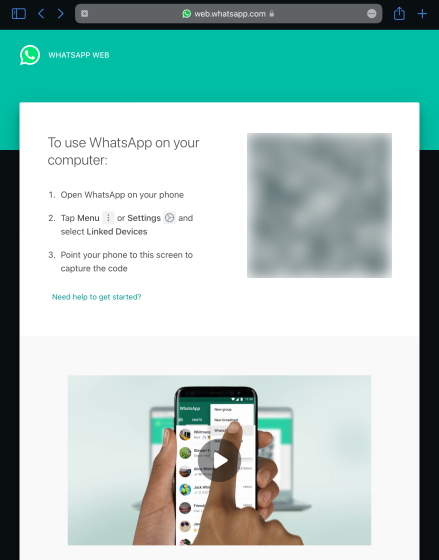 1. Öffnen Sie Safari auf Ihrem iPad und gehen Sie zu WhatsApp Web (web.whatsapp.com). Auf der Website wird einen QR-Code angezeigt, den Sie mit der App auf Ihrem Smartphone scannen müssen.