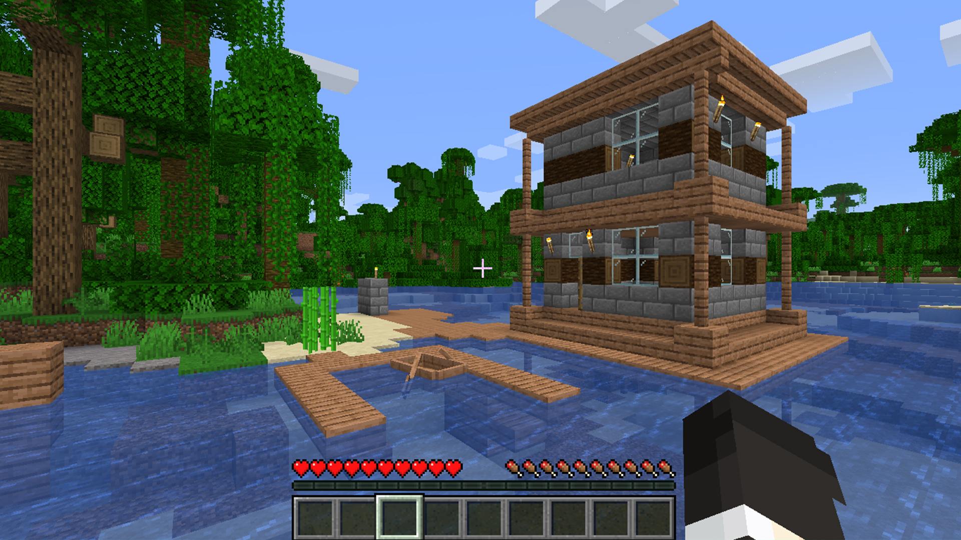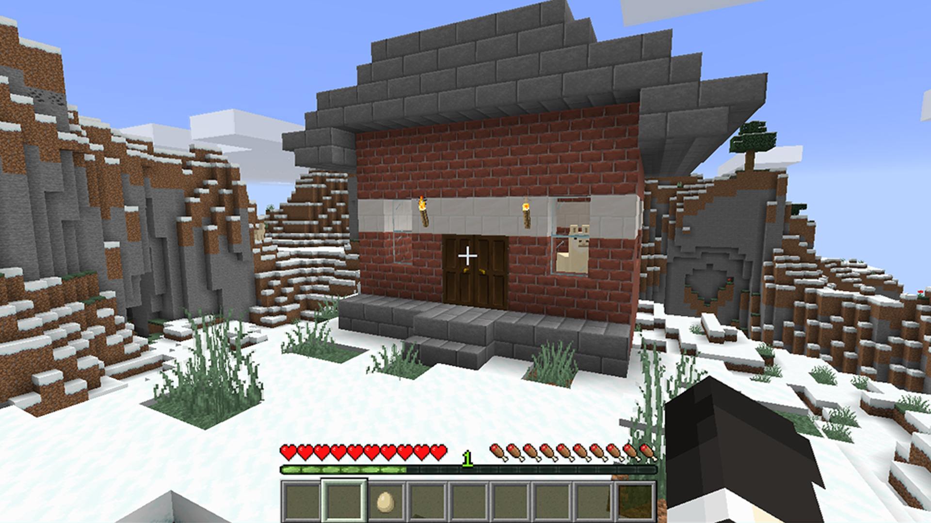 Se te perdonará por pensar que no hay absolutamente ninguna diferencia entre estas capturas de pantalla, pero fíjate bien y verás que hay un poco más de detalle en cada cubo. Esto se debe a que Faithful es una versión de 32 × 32 del paquete de texturas predeterminado de Minecraft, por lo que tiene el doble de resolución, y tú Notaré que los ladrillos se ven más redondos, los árboles están más llenos y la hierba es más tupida. Incluso el huevo que estamos sosteniendo inexplicablemente parece… más huevo.