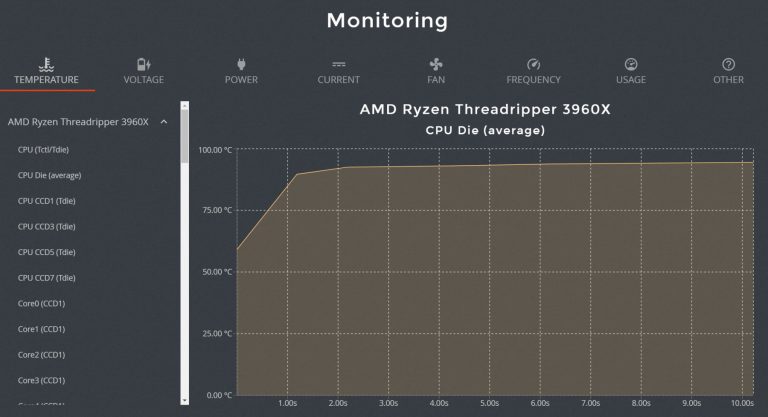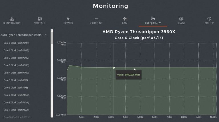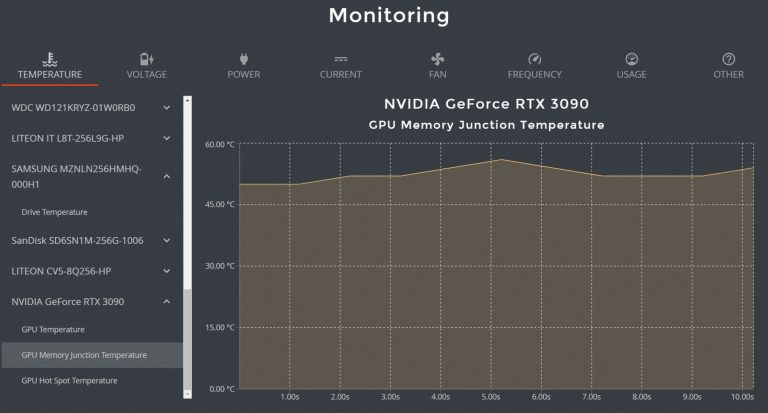 La información que se está recopilando es muy extensa gracias a la API de HWiNFO que está utilizando el software. Cada métrica, como las frecuencias de los núcleos individuales, la estructura infinita o las temperaturas del paquete, los núcleos e incluso la unión de la memoria de la GPU, se pueden verificar en gráficos infinitos.