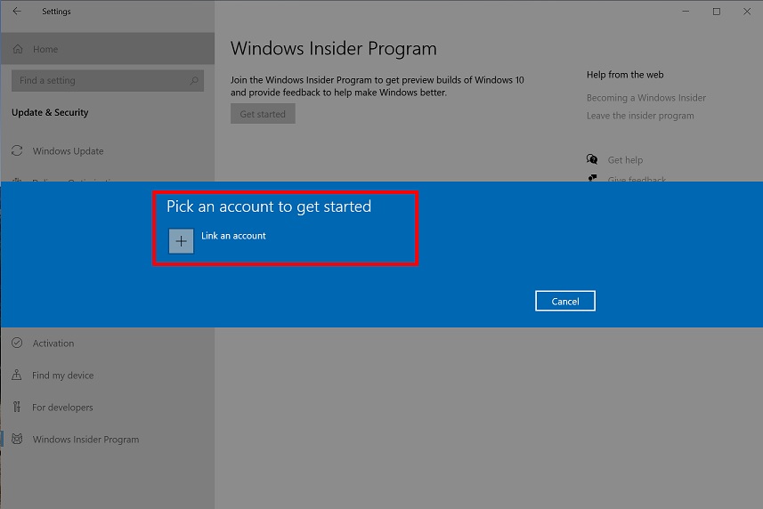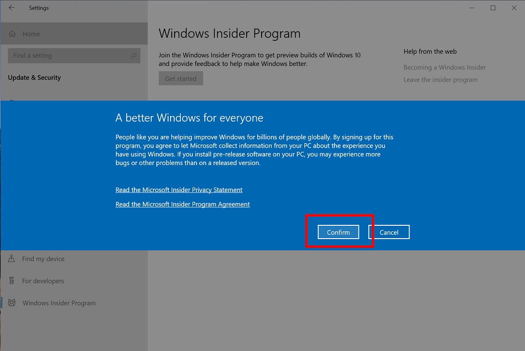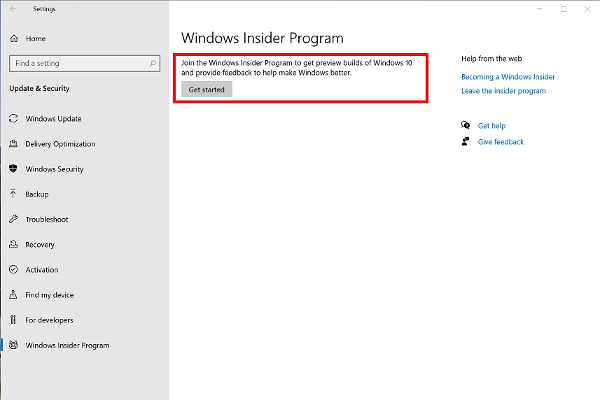 Vaya a Configuración> Actualización y seguridad> Programa Windows Insider.