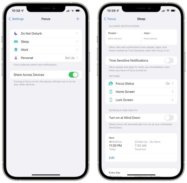 Apple ha modificado la configuración de Focus en iOS y ha movido las llamadas y el estado de Focus a cada perfil de Focus.