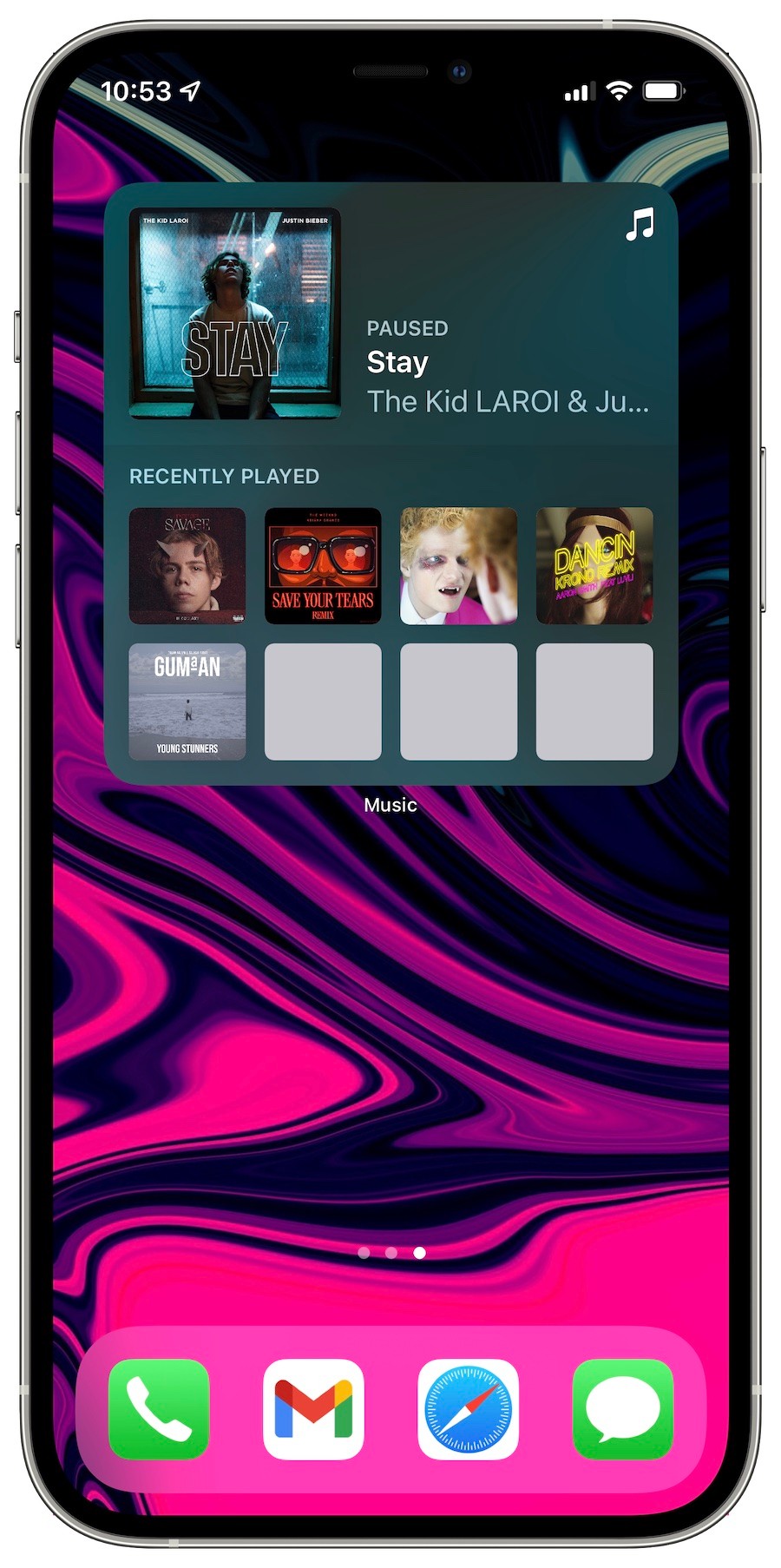 El widget de música ahora adapta su color según la carátula del álbum y muestra el estado de reproducción de la música.